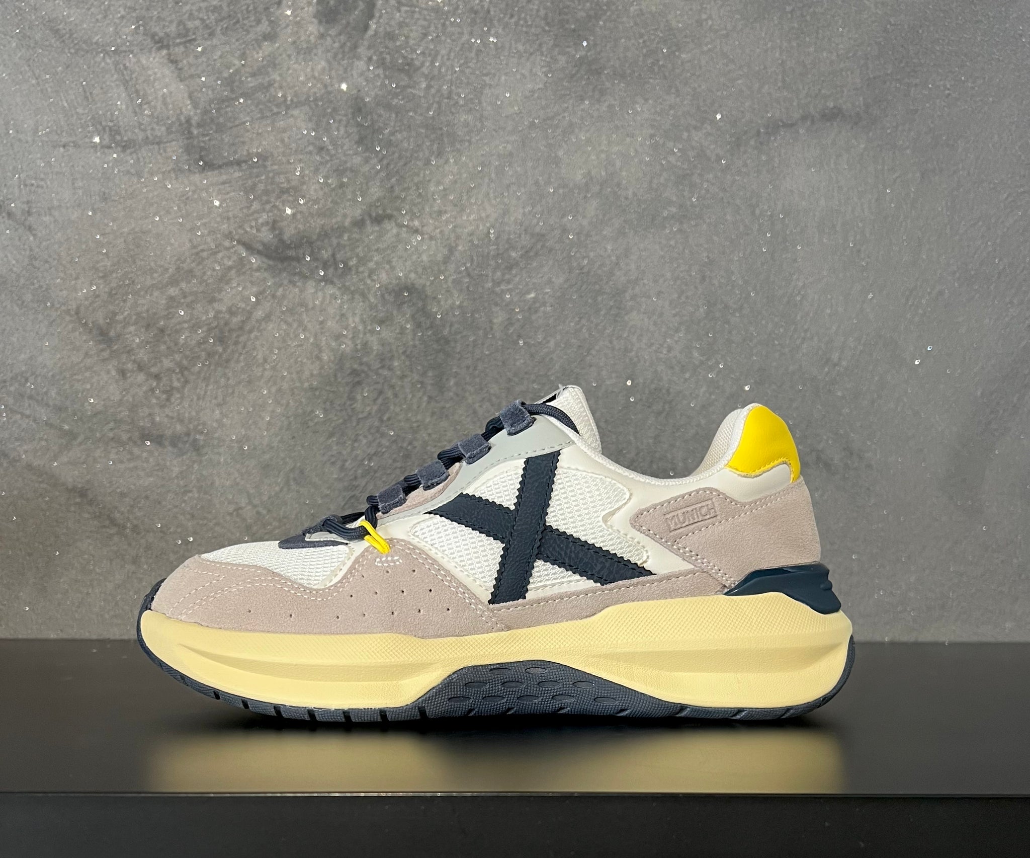 Munich mod. Nexa 17 suede / nylon traforato fondo gomma Colori taupe/bianco/blu/giallo